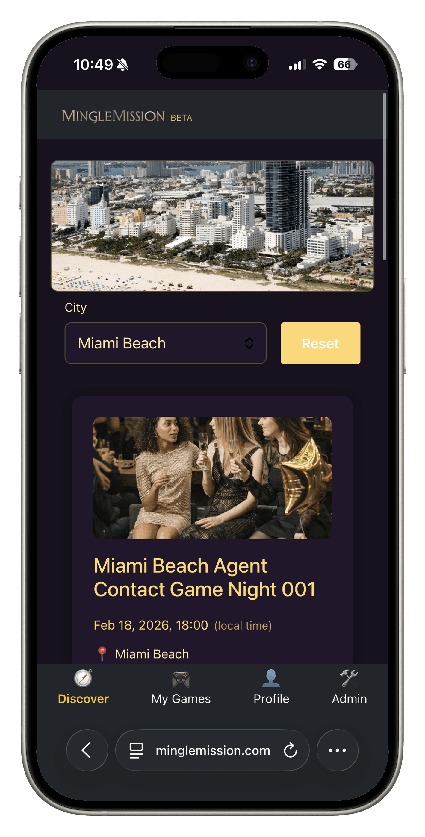 Agent-spy themed dating game app for meeting new people across 3 nearby bars.